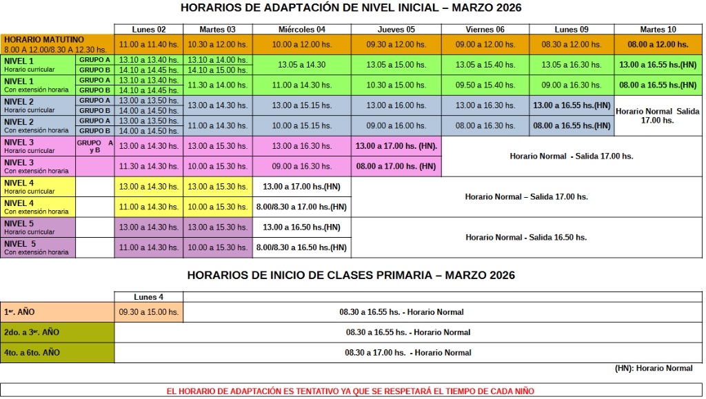 Horarios de Adaptación e Inicio de Clases 2026